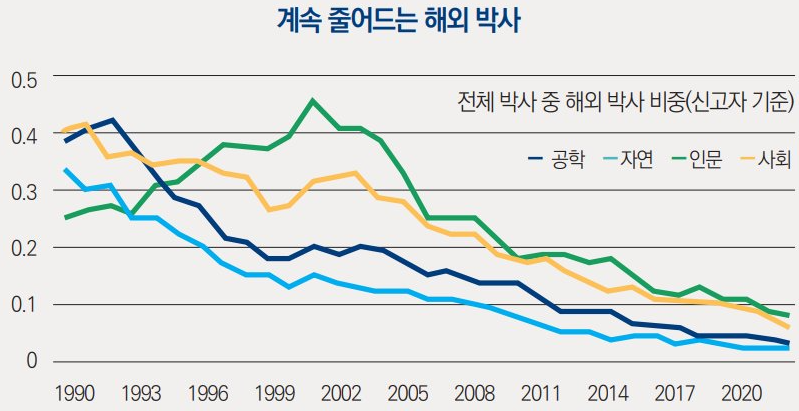ÇØ¿Ü¿¡¼ ¹Ú»çÇÐÀ§¸¦ ÃëµæÇÏ´Â Çѱ¹ÀÎÀÌ ÁÙ°í ÀÖ´Â °ÍÀ¸·Î ³ªÅ¸³µ´Ù. ¡°2022³â ±âÁØ ¸ðµç °è¿¿¡¼ 10% ¹Ì¸¸ÀÎ »óȲÀÌ´Ù.¡± ÀÌ´Â Çѱ¹¿¬±¸Àç´Ü¿¡ ½Å°íµÈ ¹Ú»çÀηÂȰµ¿Á¶»ç µî µ¥ÀÌÅ͸¦ ¹ÙÅÁÀ¸·Î ºÐ¼®ÇÑ °á°úÀÌ´Ù. |